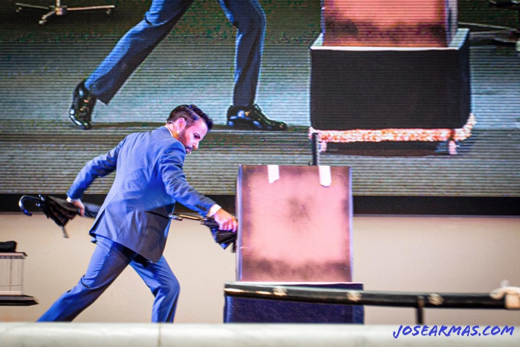 El espectáculo “Enigma” cuenta con efectos realmente impactantes y asombrosos que incluyen: magia de escena, cartomagia, la magia con dinero y objetos cotidianos, efectos con palomas… Además, el espectáculo alcanzará su punto álgido cuando los asistentes presencien en directo una teletransportación como la que da nombre a la película “El Truco Final: El Prestigio”, y cuando Armas realice un número de escapismo que consistirá en que varios espectadores lo esposen y encadenen y lo cuelguen en un baúl completamente sellado y candado a varios metros de altura sobre el escenario, momento en el cual prenderán una mecha (de 30 segundos) que irá conectada a 2 cargas de dinamita adosadas en los laterales del baúl. Armas deberá conseguir liberarse de las esposas y cadenas y escapar del hermético baúl antes de que todo salte por los aires, homenajeando así al Gran Houdini.