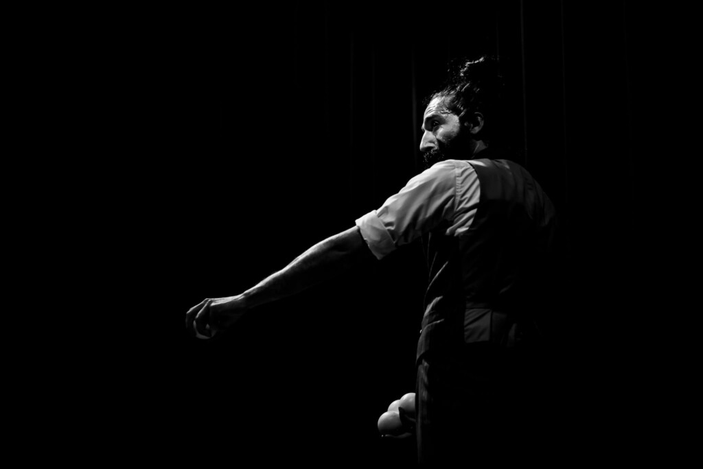 Un personaje obsesivo, cuadriculado y meticuloso.Un ser único en su especie rodeado de un sin fin de cajas que escapan a su control y con las que juega para dar forma a su mundo.Del caos surge un universo delirante donde inventa la risa, creando una locura cómica y transformándose en un nuevo ser con una nueva figura.