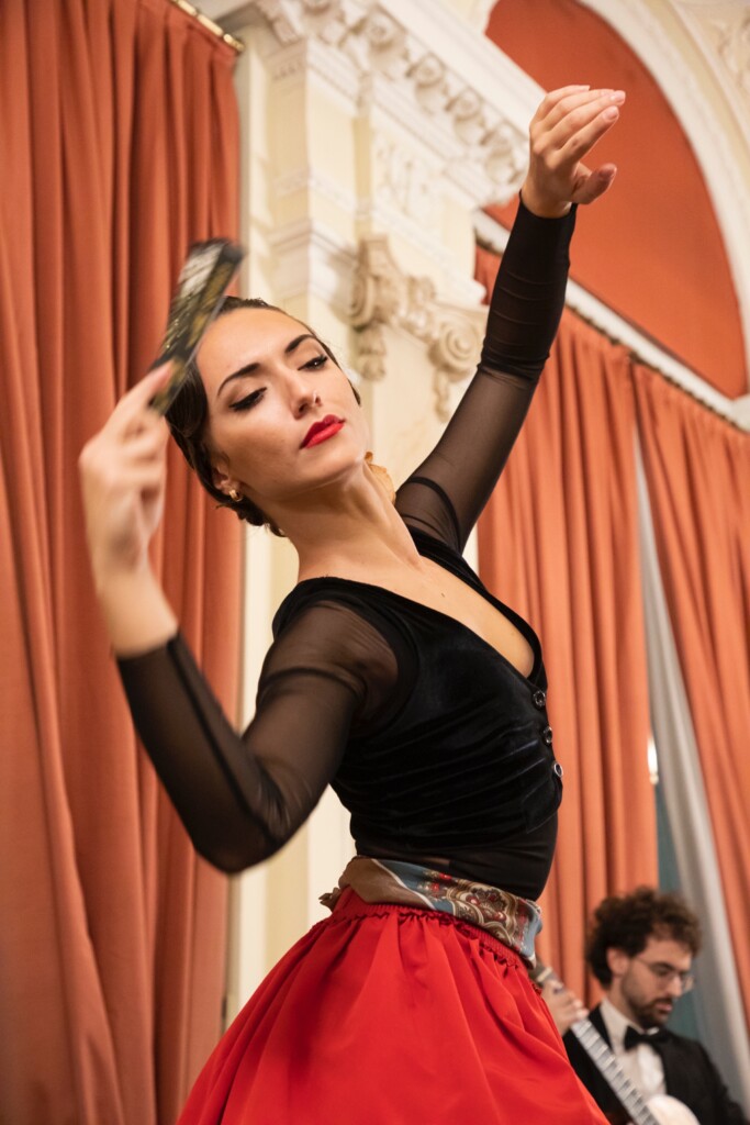 Espectáculo-concierto: baile y música, de Escuela Bolera (danza española) y guitarra española que recorre el repertorio de compositores clásicos españoles como: I. Albéniz, F. Tárrega, J. Arcas entre otros. Este espectáculo pretende acercar la música y la danza de calidad al público general de manera íntima y distendida, adaptándose a cualquier espacio y formato. Resultado: un concierto para disfrutar del arte en vivo en primera fila.