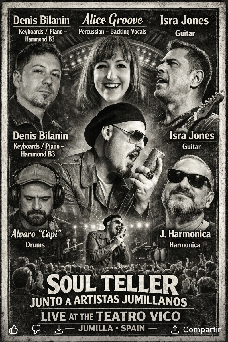 Además, Soul Teller está apoyando a los artistas de cada localidad invitándoles al escenario donde actúa: músicos instrumentistas, vocalistas individuales y coros haciendo que la velada sea inolvidable.