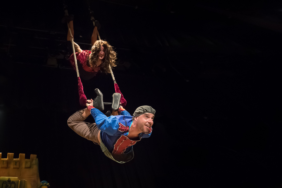 El espectáculo mezcla delirantes escenas, desde pantomima a números técnicos de circo. intensos números de trapecio y tela aérea unidos por el lenguaje del clown.