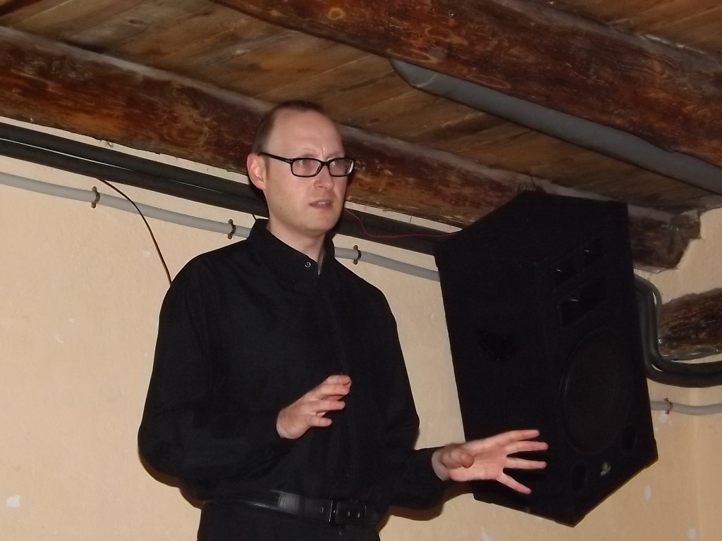 - Intérpretes:El propio artista y un ayudante con los audiovisuales, necesario sólo para proyectar vídeos (no powerpoints automáticos). En caso de que el evento se desarrolle al aire libre, será imprescindible la presencia de un técnico de sonido.