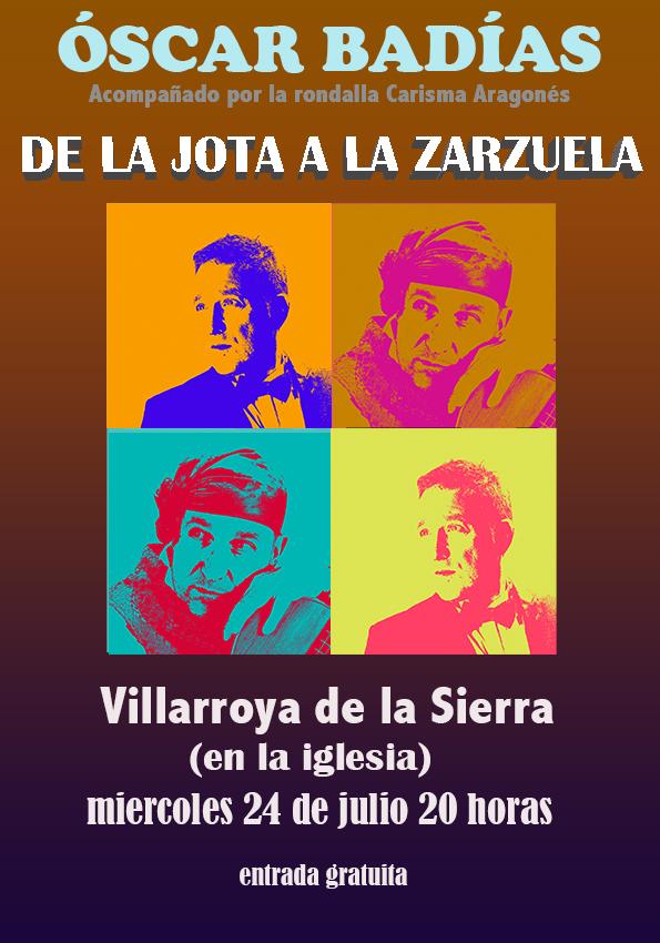 La asociación ACORDES JOTA & ZARZUELA, presenta el espectáculo «de la jota a la zarzuela» Oscar Badías premio extraordinario del Certamen Oficial de jota 2019, junto con Noelia Jiménez y la soprano Carmen Pardos, rondalla dirigida por Jesús Lozano y una pareja de grandes bailarines como son Jairo Périz y Virginia Costea, hacen un recorrido por las principales romanzas de zarzuela de temática aragonesa, jotas y alguna pincelada lírica.