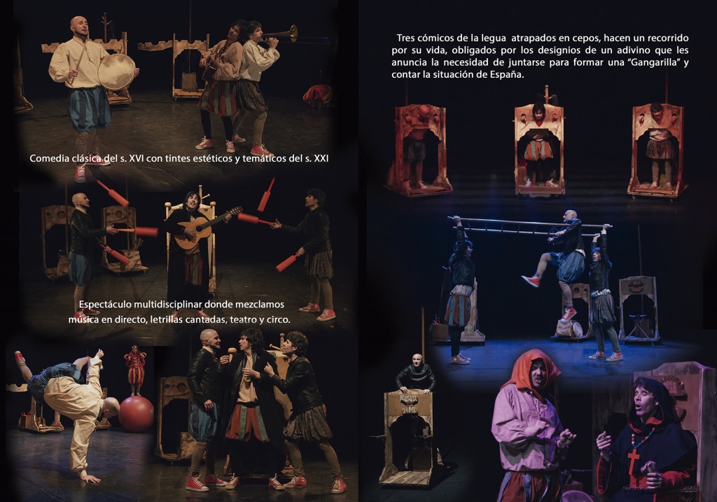 Comedia clásica del S.XVI con tintes estéticos y artísticos del S.XXI donde se mezcla música en directo, letrillas cantadas, teatro y circo.