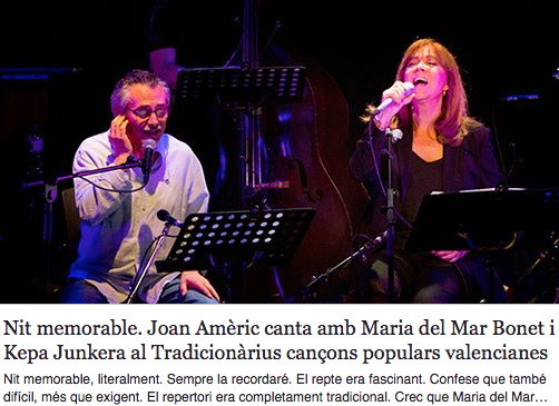 Joan Amèric, Premi BarnaSants “Millor Concert”. Bellesa i compromís s’abracen en la seua proposta artística. Reconegut per la premsa especialitzada i artistes com Lluís Llach o Maria del Mar Bonet com un renovador del génere en llengua catalana i l’autor més destacat de la seua generació. El seu espectable “Perquè sóc poble”, es una proposta que exposa des d’angles sonors actuals cançons clàssiques del seu repertori que ja són patrimoni de la nostra Cultura. El cantant introduirà detalls inèdits del proper disc que amplien el seu univers expresiu. Un univers particular habitat per sirenes, idees i somnis.