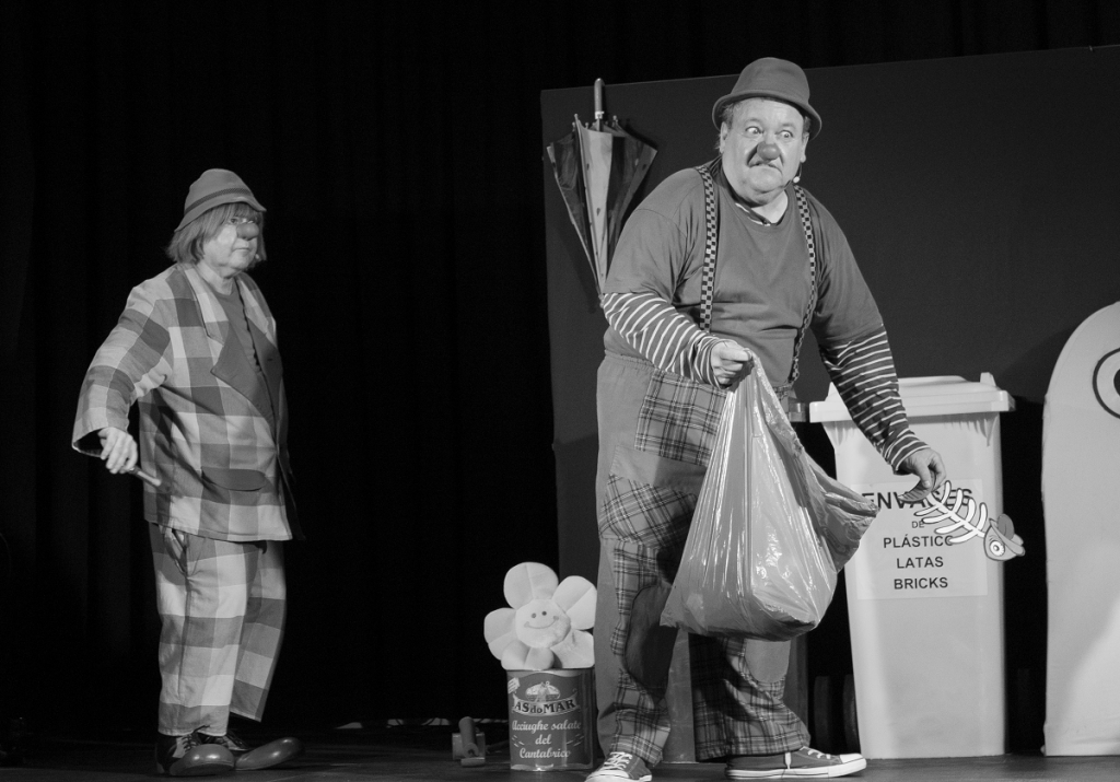 Espectáculo sobre reciclaje basado en el humor, que uniendo técnicas de clown, números de magia, concursos y la proyección de un documental, tiene como tema principal el desarrollo sostenible del planeta. De forma interactiva, consigue inavolucrar al público haciendo entender a nuestras hijas e hijos que desde casa, el colegio y el barrio, mediante la clasificación selectiva de residuos para su posterior reciclaje, al no abusar de los recursos naturales contribuimos a crear un mundo más habitable, más limpio y pleno de futuro.Así mismo,durante el desarrollo de la obra y de forma divertida se incide en otros temas transversales como son el valor de la dieta mediterránea,la educación vial y el uso de vehículos no contaminantes como la bicicleta.Polilla y Alcanfor, a través de la risa, la participación y la diversión, consiguen atrapar a las niñas y niños en su disparatado universo para poder trasmitirles conceptos hoy en día tan necesarios como son la solidaridad, la ecología y el respeto al medio ambiente. Incluye equipo profesional de iluminación y sonido propios de la compañía.