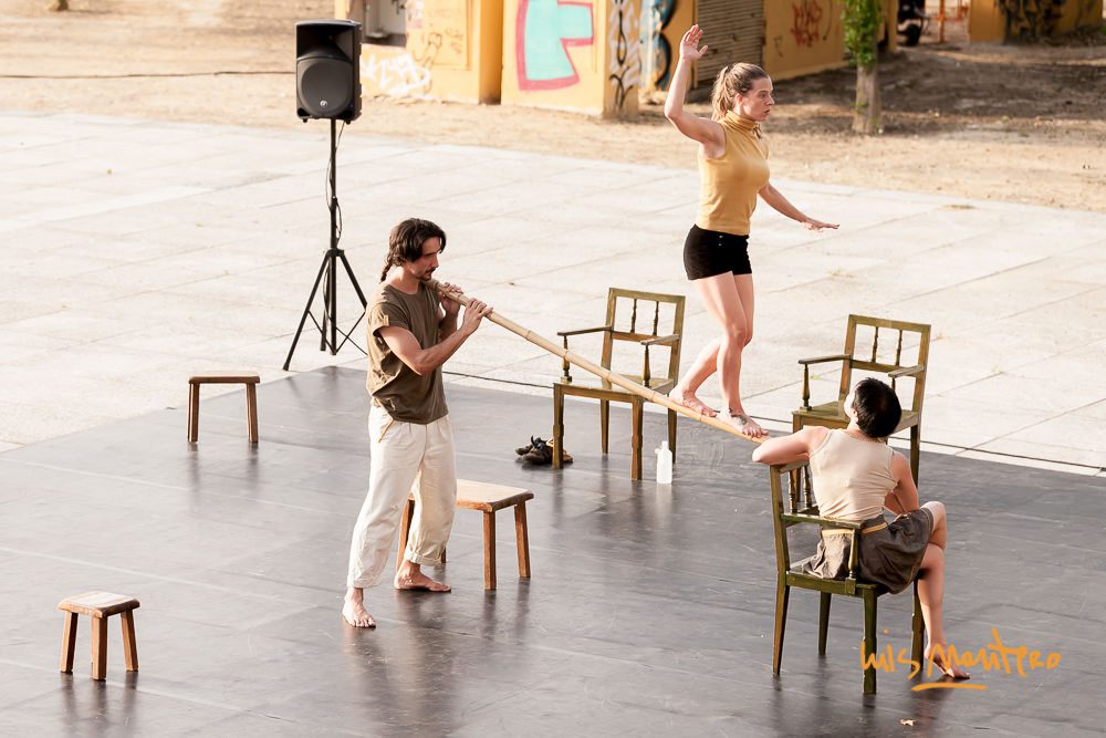 Tres personajes, tres sillas y un escenario vacío. Circo , danza y teatro se unen en la