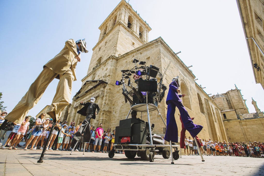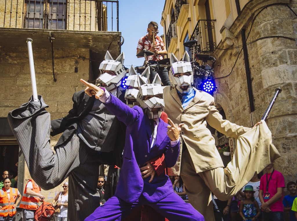 La utilización de la calle y plazas como arquitectura escénica juega un papel fundamental donde el público acompañará a estos peculiares “lobos”. El virtuosismo de los zancudos, los movimientos coreográficos y las acciones de calles a ritmo de batería, hacen de “THE WOLVES” un espectáculo donde convertimos la vía pública en una auténtica jungla del consumo, el poder, la fama y el status.