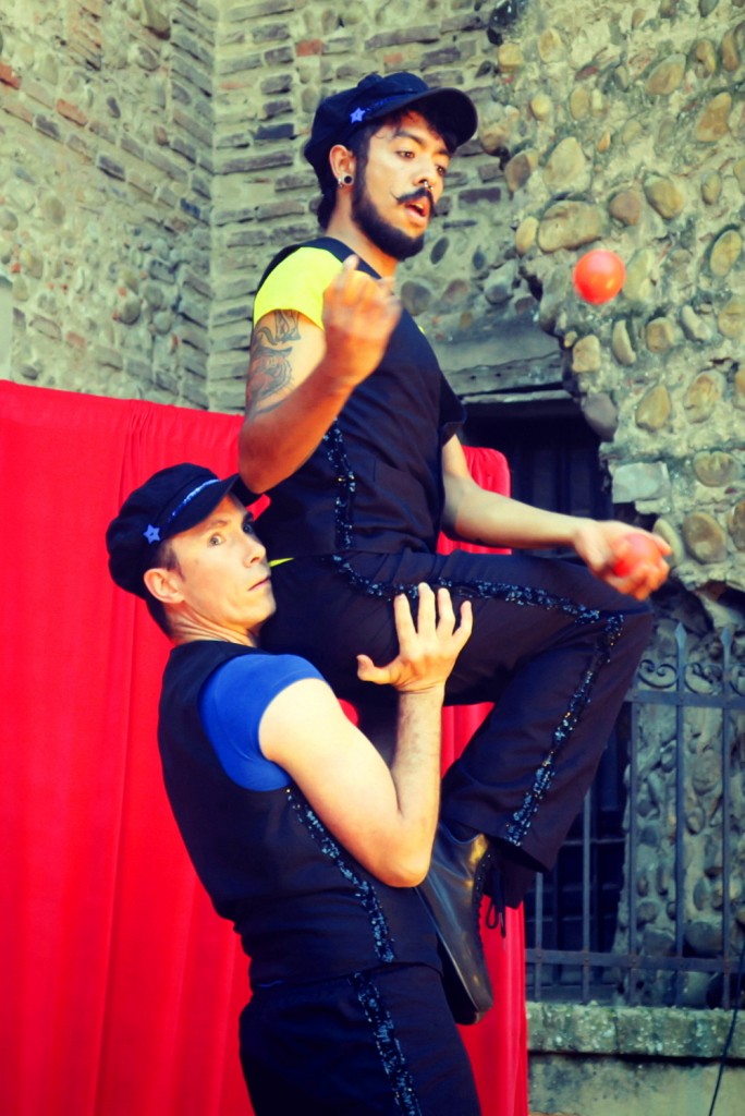 Los Hermanos Dedós son Vittorio, Maurizio y Rosario. ¿Son malabaristas? ¿Son acróbatas? ¿Son fisioterapeutas? La familia que trabaja unida, permanece unida… a veces. Siguiendo la milenaria estela de los artistas de calle, estos hermanos han llegado para entretener, deleitar, sorprender y divertir al público con sus habilidades y cucamonas.