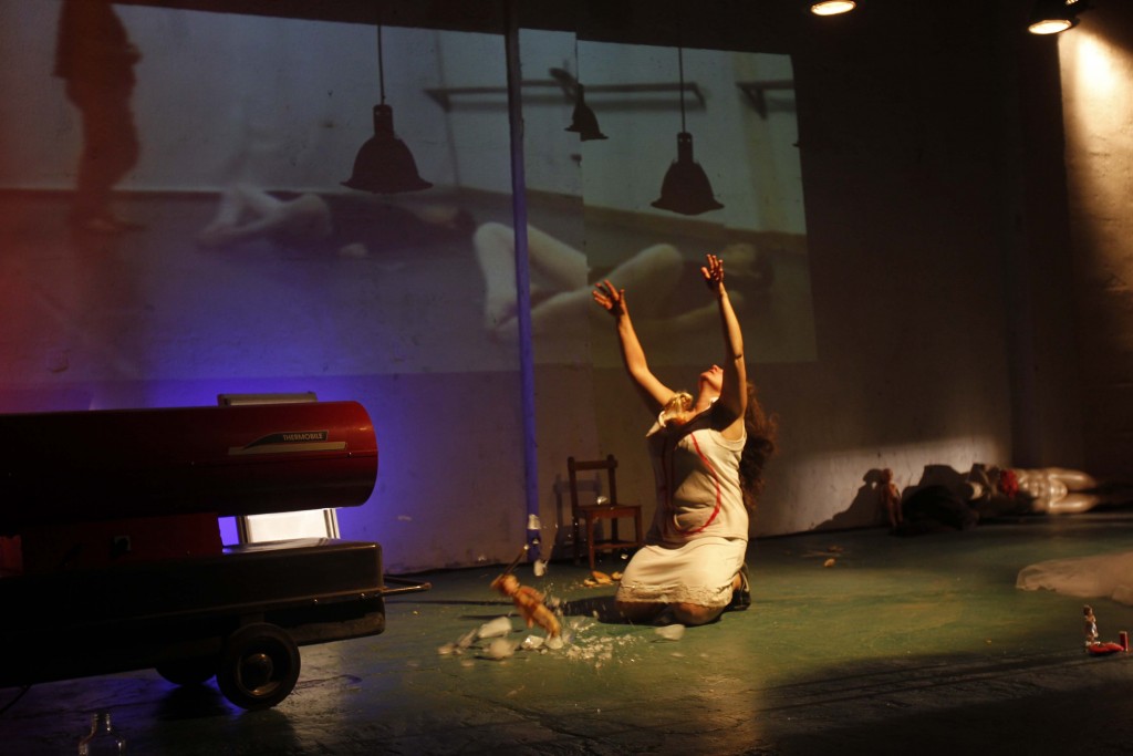 Una flor en la nevera es un espectáculo de teatro documental contemporáneo donde el documento son los cuerpos. Pieza creada a partir de entrevistas y observaciones sobre personas que tuvieron la vivencia de la invasión en la infancia, mezcladas con prensa cotidiana que a diario nos presenta este tipo de hechos como algo cotidiano. La obra muestra las consecuencias perennes que sufre el ser humano a partir del abuso sexual.