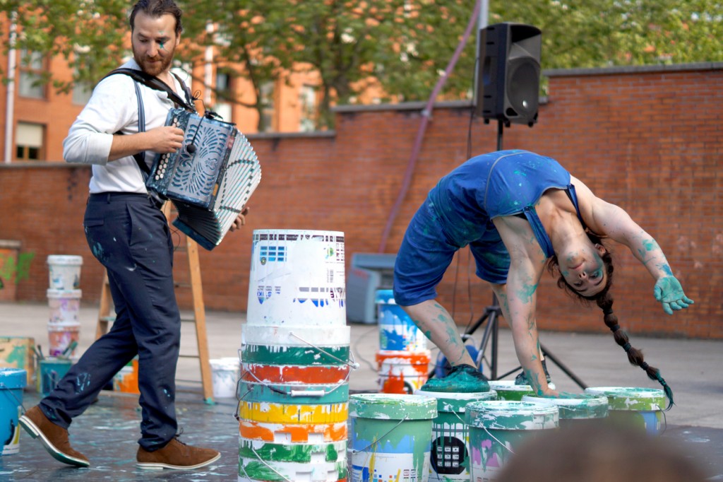 Una combinación de circo, teatro, música y pintura que no dejará a nadie indiferente. Contorsión, acrobacia, danza y teatro para contarnos este delirio que nos proponen estos dos tiernos personajes.