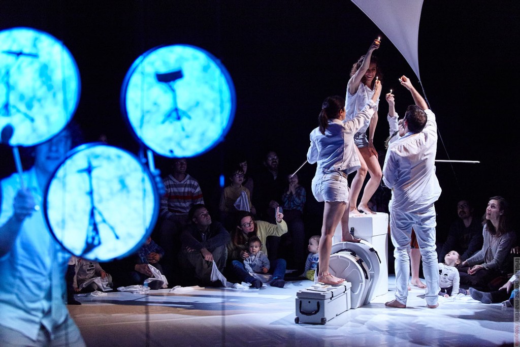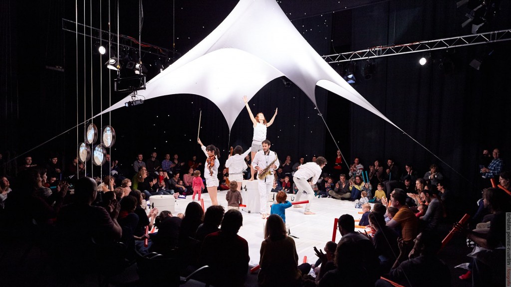 Padres y niños están invitados a participar activamente del espectáculo. Los bebés pueden entrar libremente en el espacio escénico e interactuar con los intérpretes.