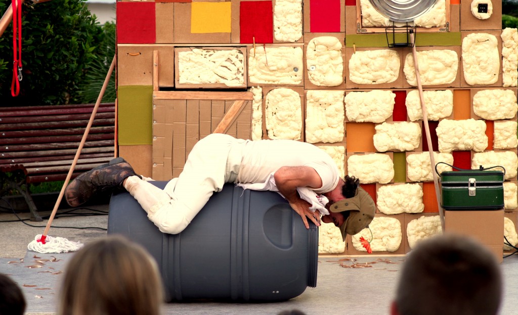 Un ser solitario insiste en su rutina pese a las bombas que a diario resuenan en un horizonte cercano a su casa. Para seguir adelante las mejores armas serán la fantasía, el juego y la tontería. El mejor aliado: el público. Espectáculo de calle sin texto para todos los públicos plasmado de ternura, clown, poesía y absurdo. «Premio del público al mejor espectáculo en la muestra internacional de teatro de calle ciudad de Palencia 2020»