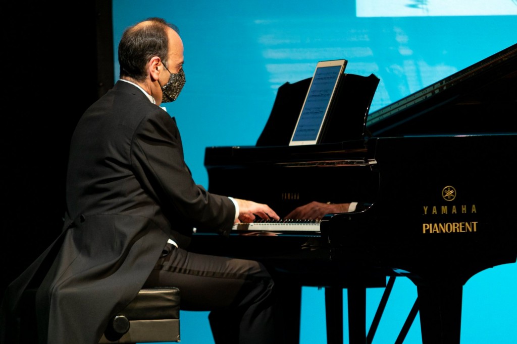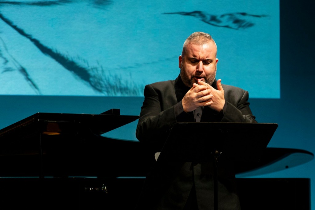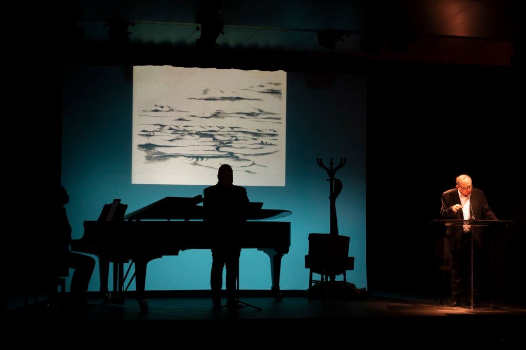Con el piano de fondo de Víctor Carbajo el actor Emilio Gutiérrez Caba va desgranando los poemas mientras el barítono Luis Santana acompaña los versos con canciones seleccionadas en función del autor y la época.