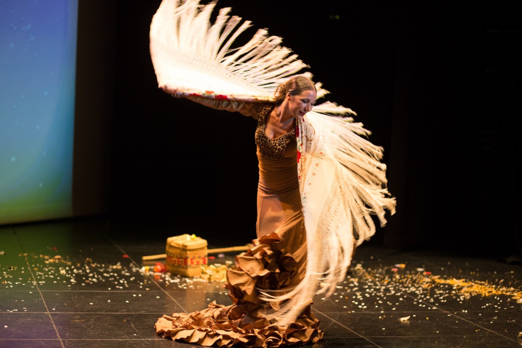 A través de la sencilla historia de una mujer-arbol y las estaciones de la vida, con una bella puesta escena y música en directo (guitarra, voz, flauta travesera) se introduce a los niños y niñas en diversos palos del flamenco como nanas, guajiras, alegrías… de una manera dulce y lúdica.