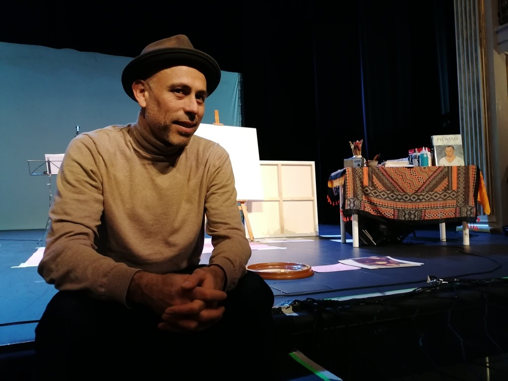 “El artista” es un espectáculo plástico, visual y sonoro. Los espectadores se adentrarán en el estudio del creador, ese espacio donde existe plena libertad, vislumbrando el proceso creativo, donde pinta en directo. A la vez, nos cuenta sus avatares y reflexiona sobre el arte. Es un viaje a través de sus experiencias como artista, sus influencias, etapas y vicisitudes, contadas con humor. Todo potenciado con la música en vivo, donde tocan las canciones del disco “Soñar”, compuesto por “Hits culturales”, mostrando todos los prismas de la creación cultural de nuestro país.