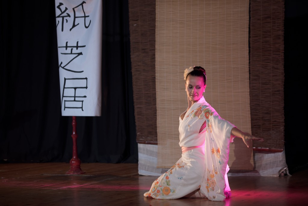 El teatro de papel japonés o KAMISHIBAI es una disciplina que ha cautivado siempre a esta creadora. El hecho de que los niños estén atentos a las pequeñas imágenes que hay en las láminas le hizo pensar que el propio escenario no dejaba de ser una lámina donde se plasmaban imágenes. ¿Quizá se podría crear un espectáculo en homenaje a esta tradición oriental? Eso posibilitaría el hacerla más visible dándole una puesta en escena más grande.