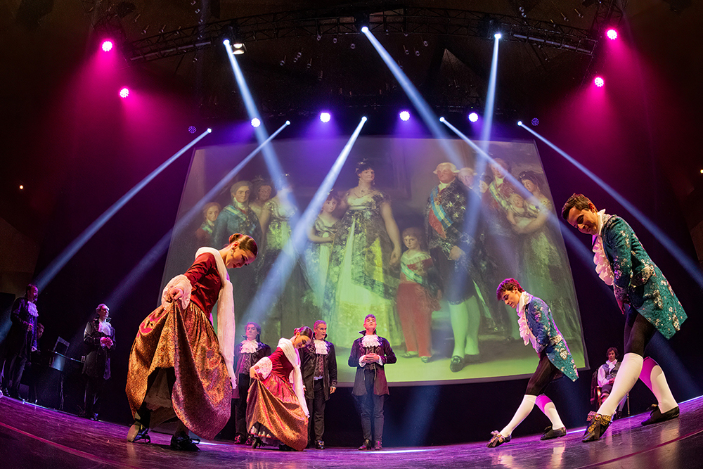Junto a la música vocal, el teatro, la danza y la música de cámara transportan al espectador a los tiempos del genio de Fuendetodos para abrir un camino narrativo único en un espectáculo en el que las proyecciones de obras originales de Goya son otro de los elementos esenciales.