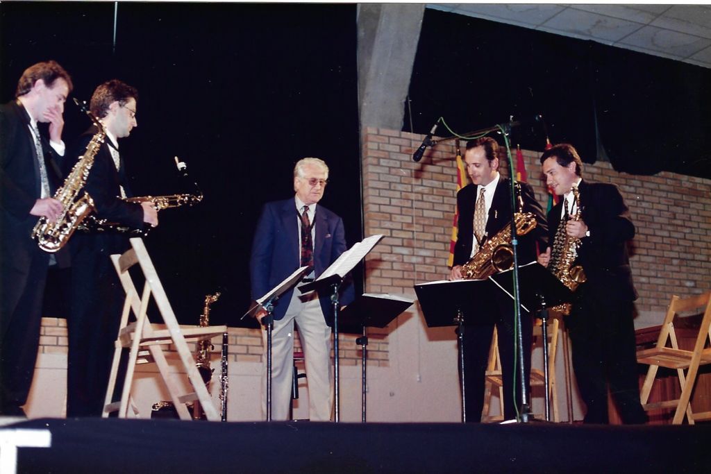 Este concierto está dedicado al maestro Pedro Iturralde, con el que hemos compartido algunos conciertos, y estuvo en la presentación de nuestro primer disco. Nos gustaría hacerle un pequeño tributo, ya que ha sido la persona que enseñó y dignificó el saxofón en España. A sus 90 años queremos reconocer la labor que ha hecho para que todo el público pueda escuchar la música de este instrumento, por lo que hemos preparado un repertorio con todas las obras que ha compuesto.