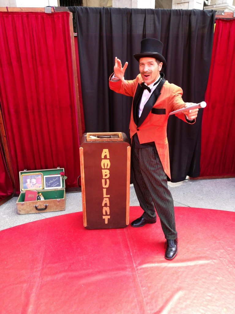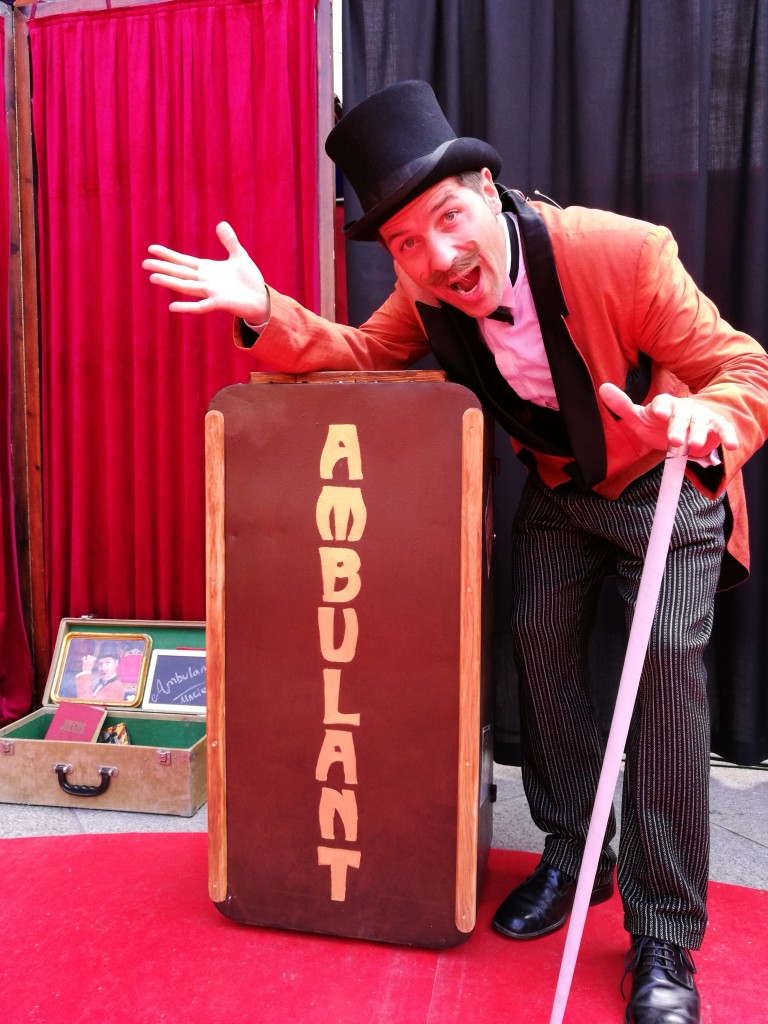 Es una propuesta ambientada en el teatro de feria, donde se muestran diferentes espectáculos en esta misma línea, como “El Profesor Coperini”, “El Chistera” o “Ambulant”, a elección del contratante.