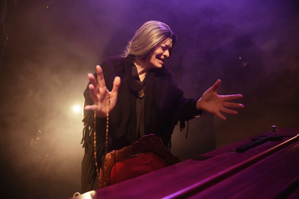 Es la noche del velatorio del esposo de la poderosa Nazaria Alba Montenegro. Sus hermanas Daría, llena de rencor y Aurorita, llena de inocencia, esperan que el difunto mengüe hasta convertirse en el joven apuesto del que todas se enamoraron para darle mágica sepultura. Pero no va a ser fácil. La noche de tormenta trae oscuros secretos, engaños, tretas, mala baba, desconfianza… incluso por parte de su perra fiel, la criada Ulpiana que les dejará a todas con la boca abierta.