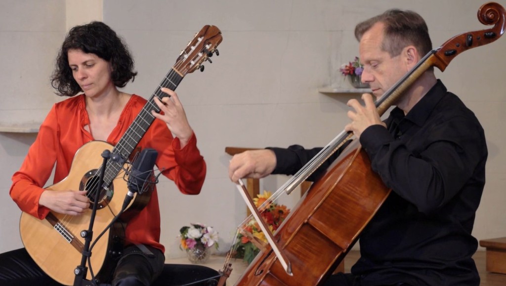 Las evocaciones de ritmos y atmósferas de países soleados se alternan con momentos más expresivos que dan rienda suelta a la sensibilidad y sensualidad del cello y la guitarra. Guitarra y cello en mano, el «Dúo Arpegi» les invita a compartir sensaciones y emociones.
