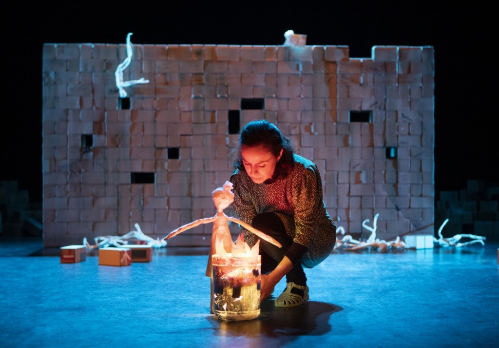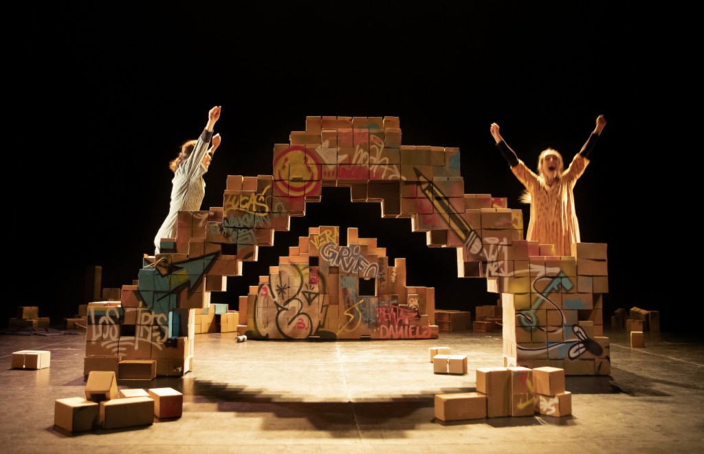 Este espectáculo habla de muros, vallas, ladrillos y un puente. Es una metáfora de las fronteras tanto visibles como invisibles. A ambos lados dos personajes se buscan, juegan, se necesitan y comparten idénticas ilusiones, los mismos miedos. Pero sobre todo tienen un proyecto común : CON LAS MISMAS PIEDRAS DEL MURO CONSTRUIRÁN UN PUENTE