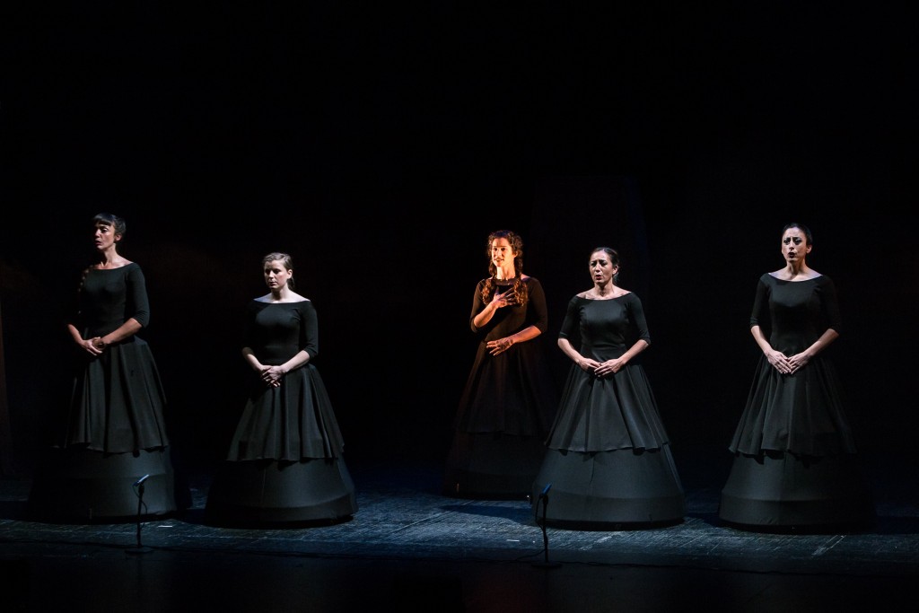 Cinco hermanas encarceladas en cinco miriñaques. Cinco mujeres oprimidas por una desviación de esta sociedad; la del “qué dirán”, y que encarna a nuestra protagonista con alma de hierro, Bernarda.