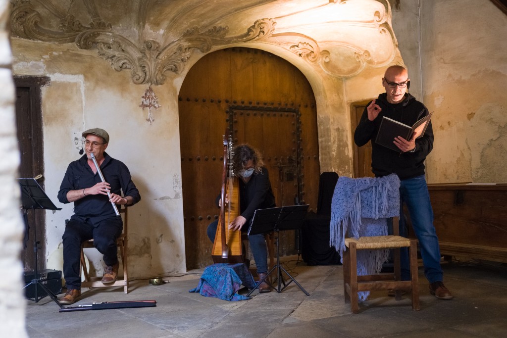 El espectáculo cuenta con la música en directo del Mantel de Noa -Pilar Gonzalvo y Miguel Ángel Fraile- que arropa los textos con melodías evocadoras de las diferentes épocas que vamos atravesando.