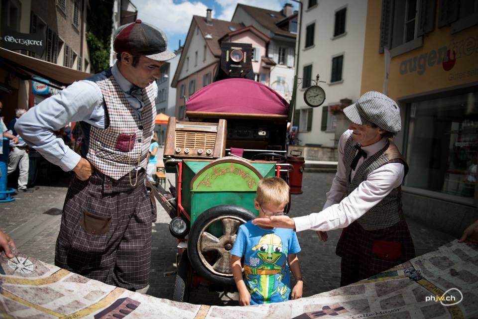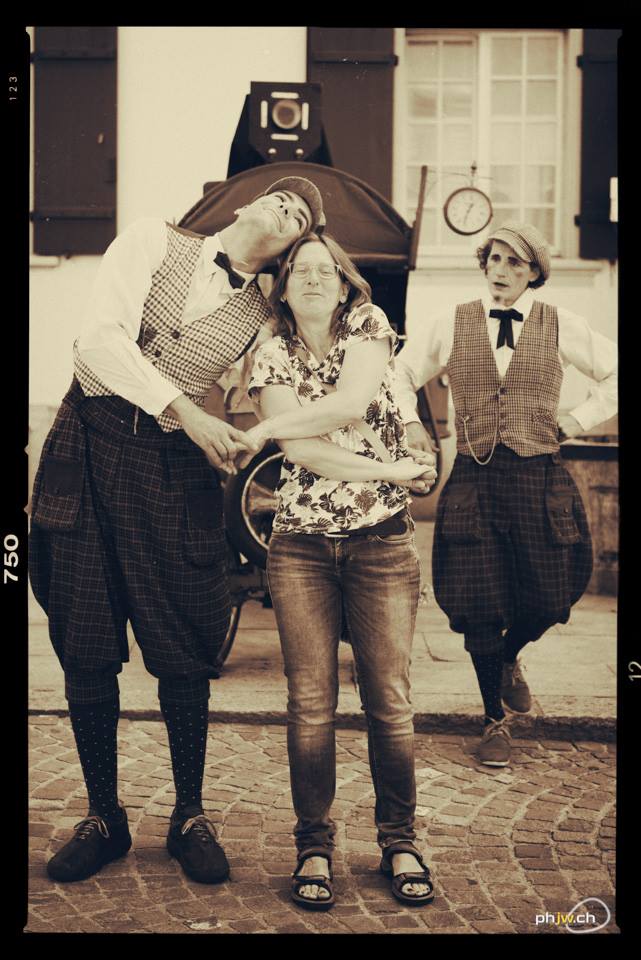 Humor, acción y muchas risas es lo que nos proponen estos dos artista de la fotografía antigua, que a contranatura de la era que vivimos vienen a recordarnos que las cosas bien hechas llevan su tiempo, en este caso hacer una sola foto en toda una hora de intenso espectáculo.