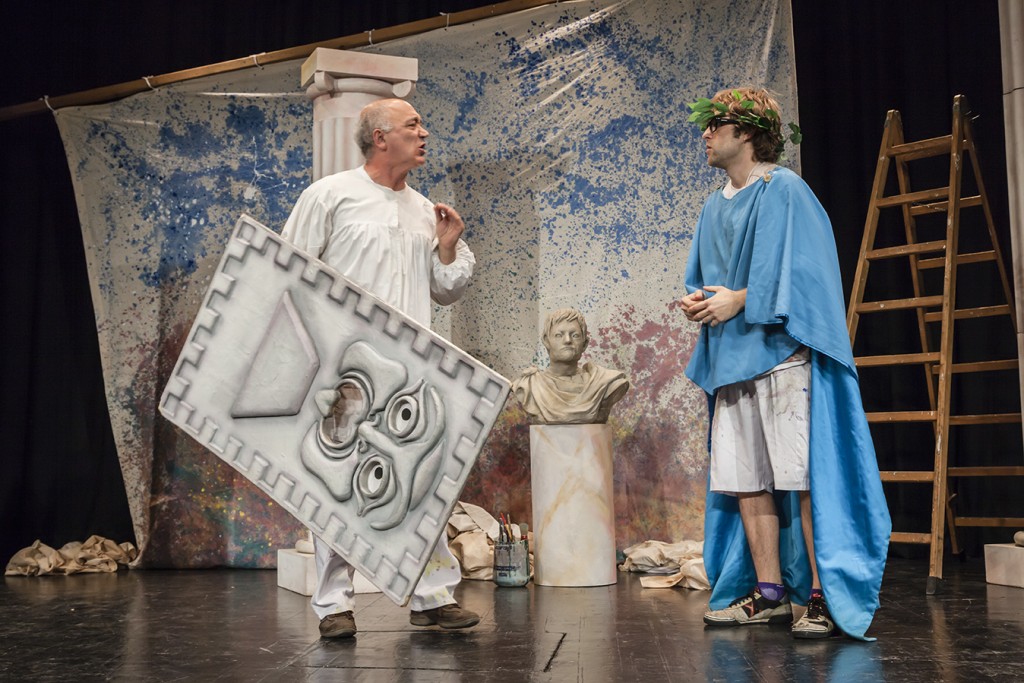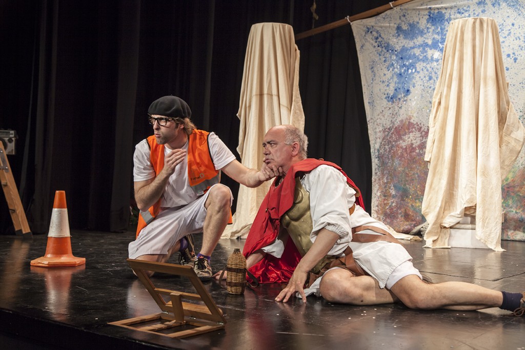 Una comedia delirante , teatro del teatro, con unos diálogos disparatadamente divertidos y llenos de giros y juegos de palabras. Un aprovechamiento sorprendente de cualquier objeto cotidiano para incorporarlo a la escena. Un espectáculo para entender la caída del Imperio Romano al alcance de todas las edades.