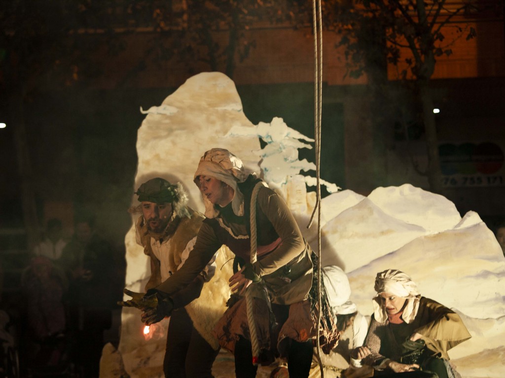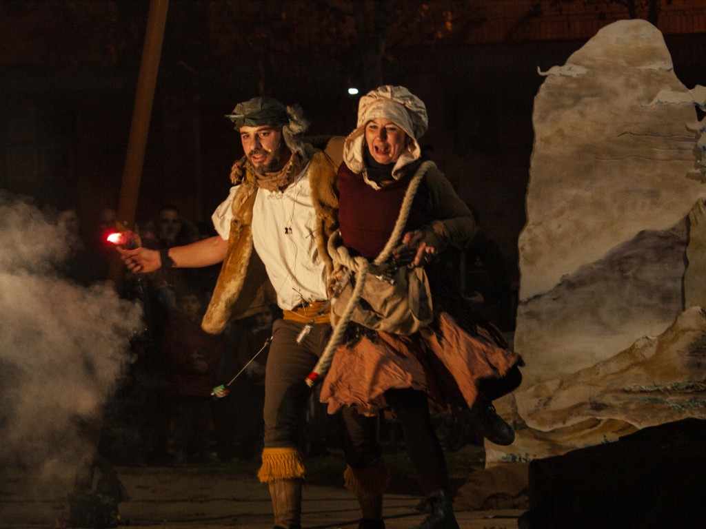 Una cantante en directo, versiones de jotas sobre las bases de becerros y guitarras flamencas. Hablan de envidias, brujas, bramaderas zumbadoras, hechizos,.. nuestro patrimonio inmaterial. Cantarán canciones mientras se suceden acciones pirotécnicas y circenses.