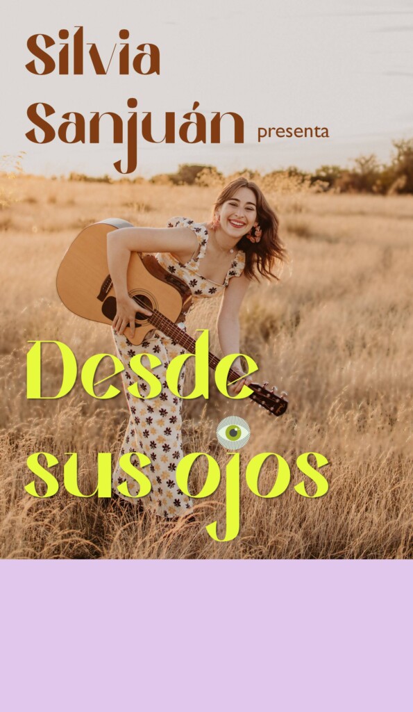 La cantante segoviana Silvia Sanjuán presenta su primer disco en solitario, titulado Desde sus ojos. Las canciones, de música pop y folk, e inspiradas en artistas como Simon & Garfunkel, Silvio Rodríguez o Amaral, nos muestran el universo de esta artista, moldeada, como todos en mayor o menor medida, por los ojos de los demás en un intento por encajar en el mundo. El concierto es a formato cuarteto con los músicos Ainhoa Muñoz (violín), Lara Suárez (violonchelo) y José Ramón Franco (piano).