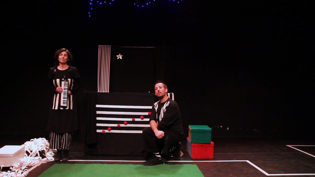 DOS EN RAYA es un espectáculo para todos los públicos de cuentos y magia que juega con las líneas: con lo que son y con lo que pueden llegar a ser. Nos gustan las líneas que dibujan, las del pentagrama, la del horizonte, los renglones de los libros y jugamos con ellas. Pero también cuestionamos las líneas que limitan, tanto las fronteras físicas como esas que no se ven pero que no nos permiten ser felices.