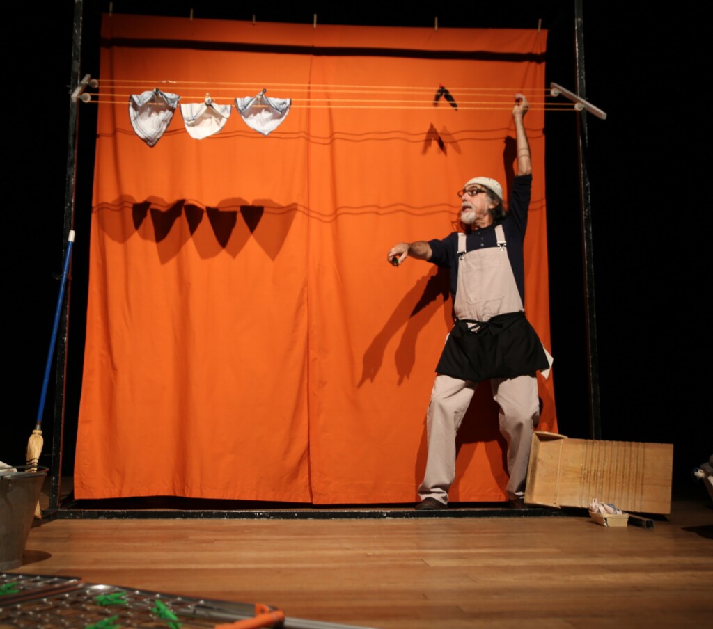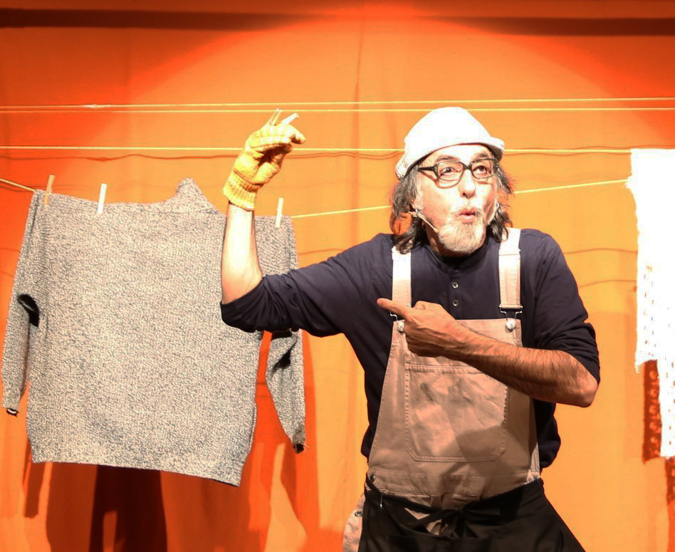 El viejo Leonardo sube a la azotea a tender la ropa. Cuál será su sorpresa al encontrar que el público lo está esperando. Entre dichos y refranes dará vida al topo y a la rana, al cuervo y a la zorra o a un león y un ratón entre otras fábulas. Nos las contará con los únicos recursos que tiene a mano: la ropa tendida, unas pinzas de colgar y los trastes de lavar. Una original propuesta con la que poder compartir emociones, unidas a la ternura y la locura del viejo Leonardo.