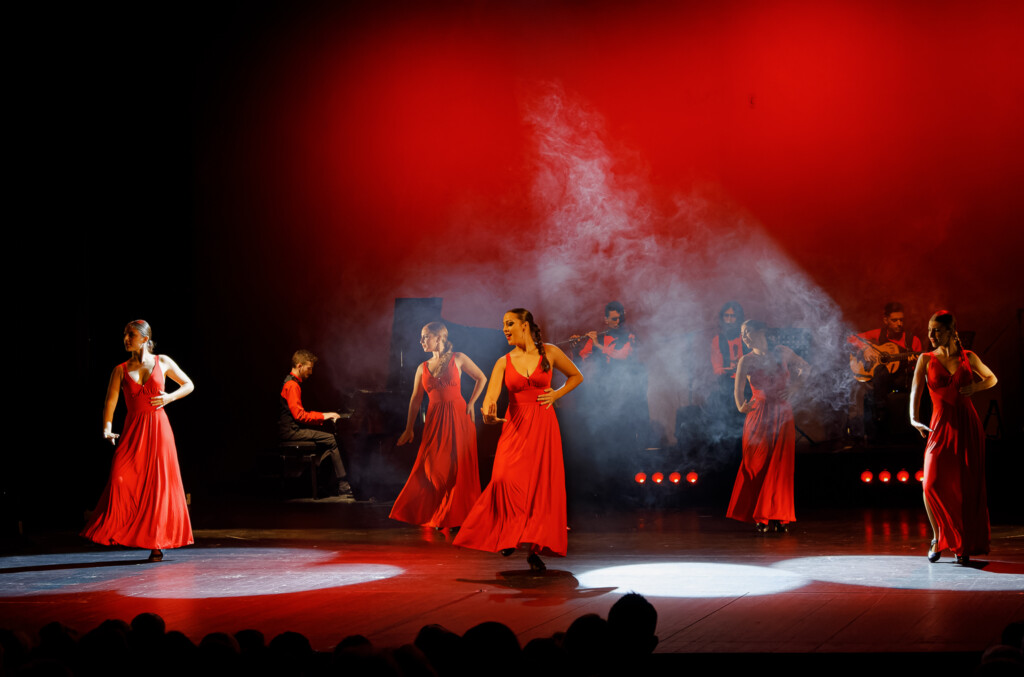 La actuación crea este mundo atractivo al mismo tiempo que destaca el estilo innovador del Ballet Flamenco de Barcelona que fusiona elementos del baile y la música flamenca tradicionales con elementos del ballet y la música más contemporánea, clásica y jazz.