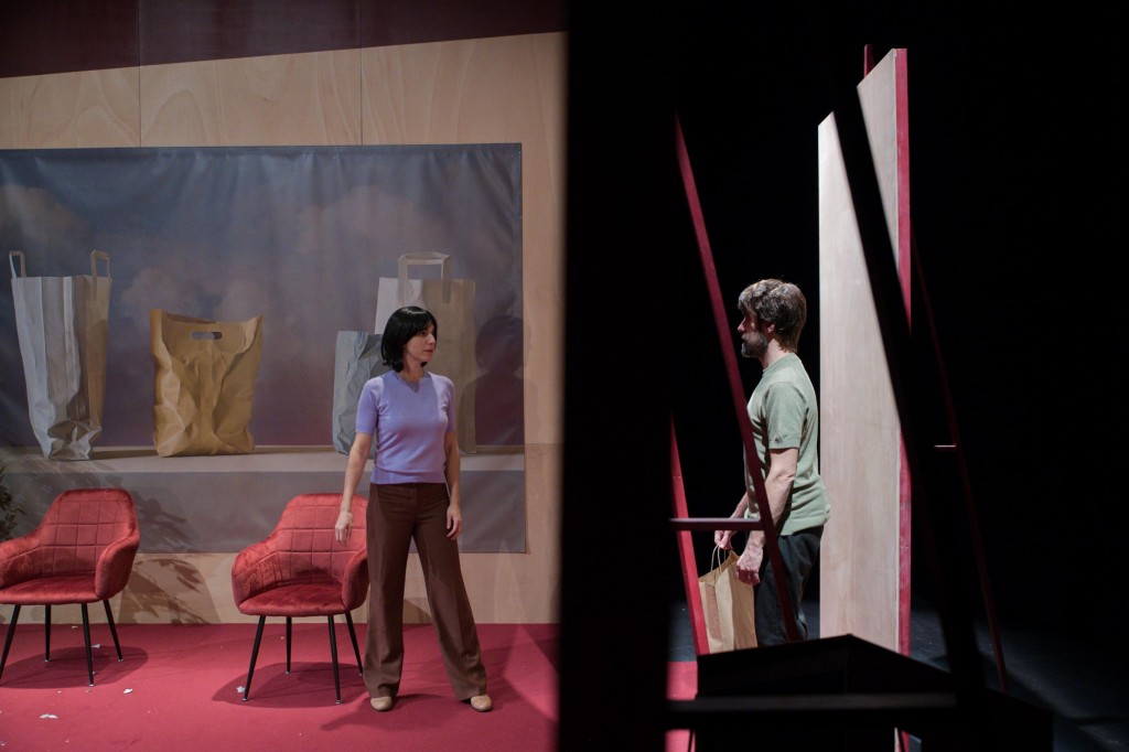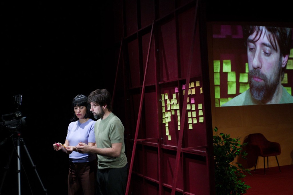 En esta nueva pieza nos centramos en trabajar la ficción como algo que da forma a nuestra realidad. Los personajes de «Simulacro» tratan de imitar la vida, la capturan en el interior de una cámara de vídeo con el propósito de sentir o entender algo, y así estar preparados para lo que pueda venir en el futuro. Pero es como si a base de artificios y falsificaciones se hubieran olvidado de cómo conseguir que las cosas sucedan de verdad.