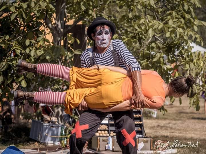 Un payaso aparece en escena. Se comunica con el publico SIN HABLAR, solamente mediante la EXPRESION GESTUAL y en TOTAL SILENCIO. Asi logra que el publico, desde los mas pequenios a los mas grandes, se envuelven en una atmosfera de atencion chispeante – hasta que estalla la primer risa – que a partir de ahora ya no parara. Enseguida aparece una muniequa peculiar que poco a poco cobra vida hasta que el duo se envuelve en una enredadera interminable de cosas – entre malabares (devil stick, contacto, diabolo, poi) y acrobacias – que al fin y al cabo…no llegan a ningun lado…mas alla que la carcajada.