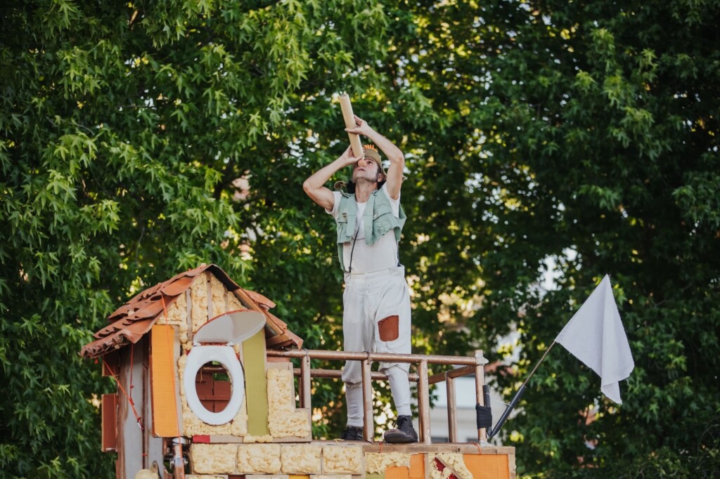 Espectáculo de teatro de calle en clave de clown para todos los públicos. Obra muy divertida, poética y entrañable, con la complicada tarea de enfrentarse al tema de la guerra y su tragedia a través del humor y con lecturas para todos los públicos.