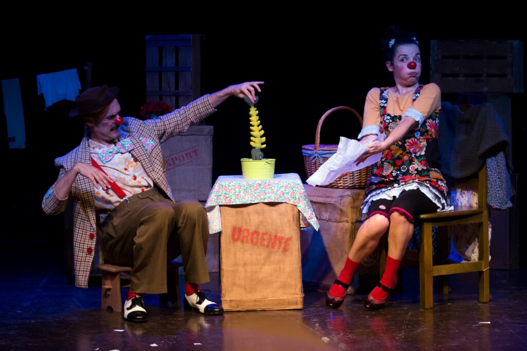 Nasu y Basi dejaron un país donde el viento se llevó todos los colores, donde los pájaros se han ido para no volver y la luna tiene miedo a salir; han atravesado ríos, mares y desiertos, han escalado montañas y atravesado praderas; todo para encontrar un lugar mejor, buscando el Norte. Clown Sin Tierra, está dedicado a toda esa gente que huye y encuentra, que sueña y realiza, que llora y que, aun así, sabe reír.