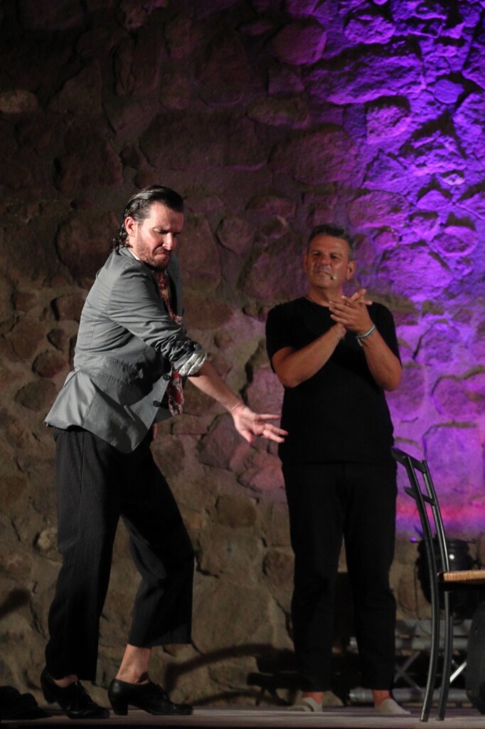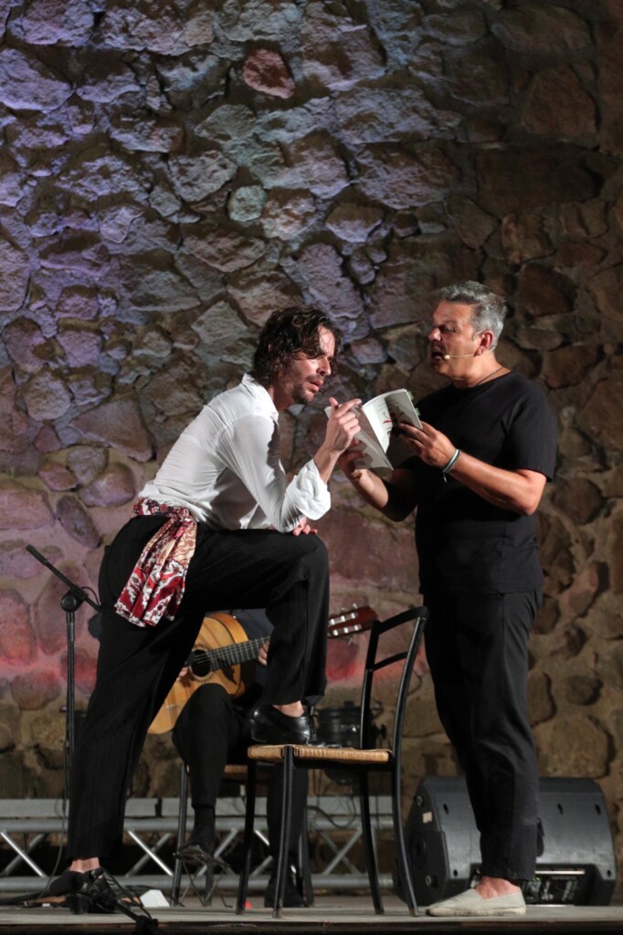 La voz ilumina los acordes flamencos que salen del mástil de la guitarra, mientras los poemas conversan con el baile de Alejandro Rodríguez , quién describe los versos de este poemario, bailando poesía jonda con acento andaluz.