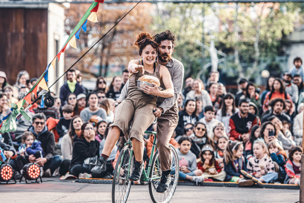 Él es ingenuo, distraído y soñador, ella es pura energía, velocidad y movimiento. Juntos son como el agua y la harina, juntos preparan pan en un día que parece simple y normal, como el pan de cada día. Pero en realidad es mágico y sorprendente, como ellos dos. Tuli lee boca abajo, suspendido en un mástil, Vroni monta en bicicleta, pedaleando con las manos y conduciendo con los pies. Son divertidos, tiernos y surrealistas, amasan a cuatro manos y mientras esperan que el pan se levante y se cocine, nos regalan un viaje en el tiempo y en los sentimientos.