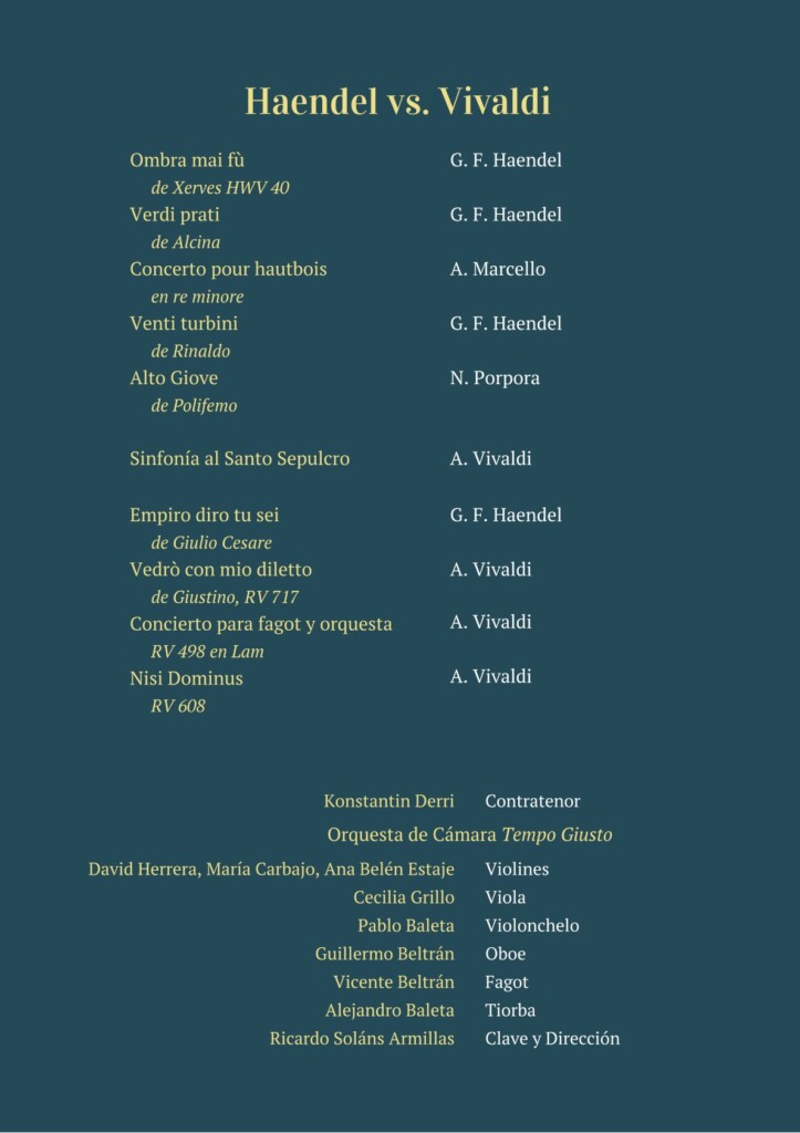 - Intérpretes:Konstantin Derri, contratenor y septeto Tempo Giusto