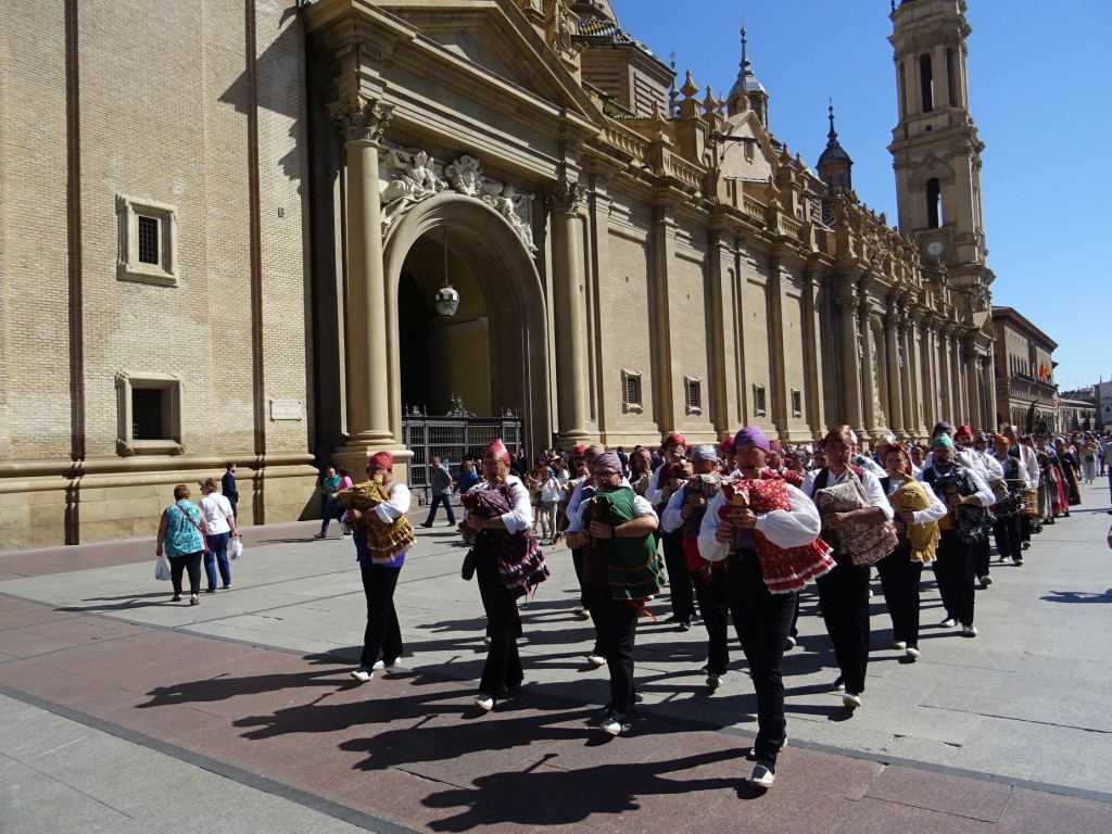 Y por otro, el grupo de Mayordomos, que son una parte esencial del espectáculo, ya que van ataviados con una cuidada selección de trajes regionales de las distintas comarcas de Aragón, y realizan bailes tradicionales allá donde hay una plaza o un ensanche, invitando al público a bailar mazurcas, polcas, jotas o valses tradicionales aragoneses.