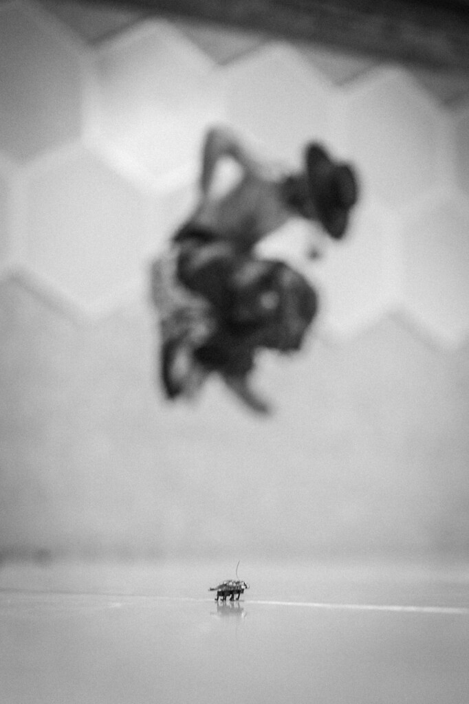 Hace más de un año y medio que Jonathan está desaparecido. El deseo de volver a bailar con él hace brotar esta danza. Nos trasladamos a su pueblo natal, Mesitas del Colegio, en la región de Cundinamarca, Colombia. Campo y barro, entre violencia, pobreza y abandono, la danza persiste; se viste de demonio y decrepitud, y permanece. Se despoja como una serpiente, muda de piel, duele hasta la desesperación y siempre, indefectiblemente siempre, la danza vuelve, recuerda y persiste.
