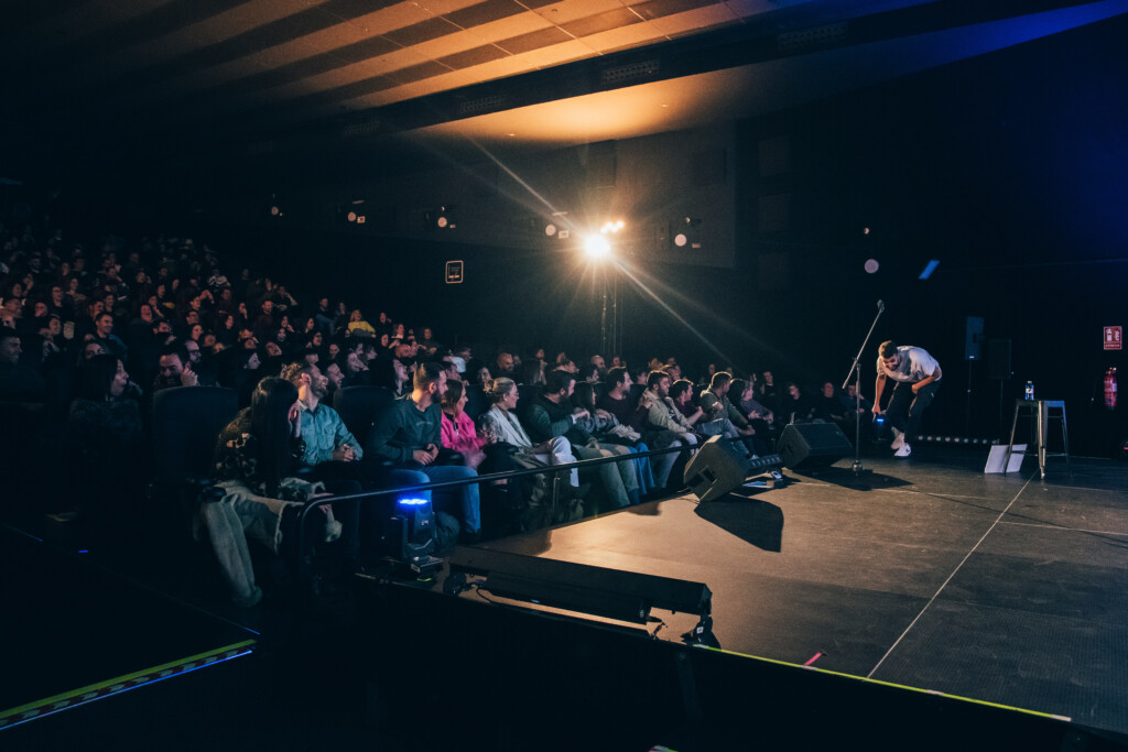 Un monólogo cargado de interacción con el público, piercings y flequillos rectos.