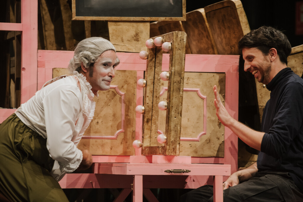 Un compositor de la época barroca ha sido el elegido para ir a la época actual a realizar su último gran concierto. Pero no le explicaron que en esta época también tenemos teatros, así que el Sr. Puant ha traído con él su teatro. Como no cabía todo el teatro en la furgoneta, ha tenido que traer la mitad de la platea. Y con ella, sus entrañas, lo que normalmente el público no ve: el camerino, sitio íntimo donde los artistas viven muchas cosas antes de salir en escena, y donde podremos espiar la vida más íntima del Sr. Puant. Un mundo vestido de rosa, en el que nuestro protagonista sueña, baila y juega a tener aquella vida que fuera los escenarios no tiene.