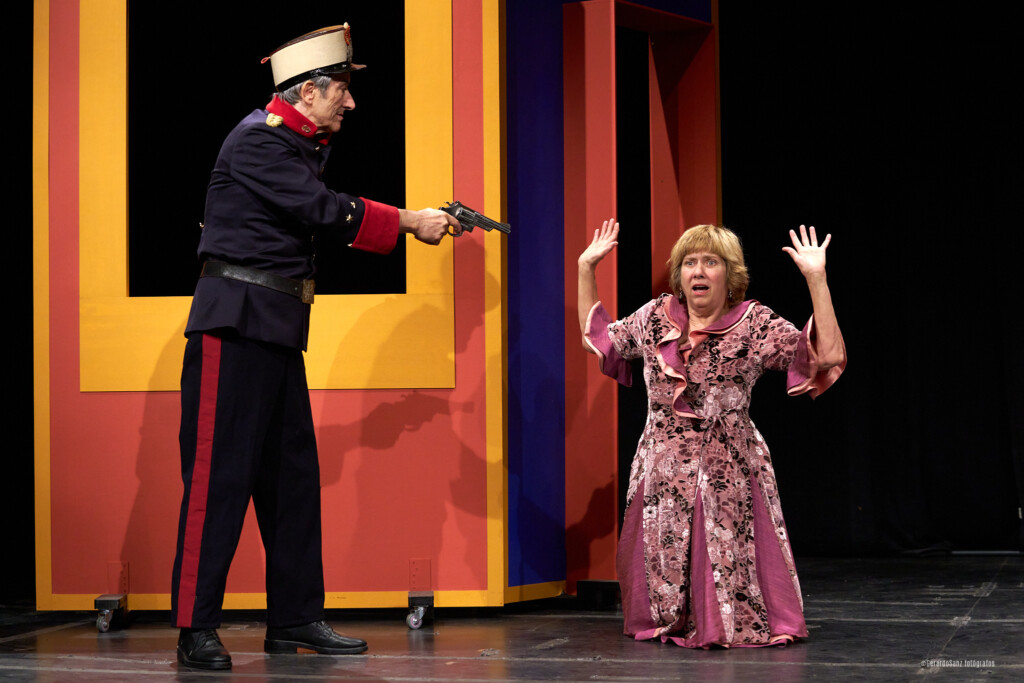 Deciden ensayar sus escenas y acaban haciendo casi toda la obra. Actuarán, improvisarán, discutirán, reirán, se entregarán generosamente a representar “Los cuernos de Don Friolera”. Así, junto al esperpento en estado puro, teatro dentro del teatro, mostrando los entresijos de la creación escénica. Reivindicación de la figura de Valle y su visión de la España de principios del siglo XX y el machismo imperante en un sector de la sociedad que lleva al protagonista de ésta historia a actuar violentamente, sin estar convencido, más por corporativismo sexista que por celos. Ideas y comportamientos que todavía hoy, no están erradicados de nuestra sociedad.