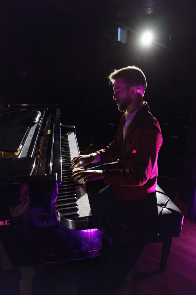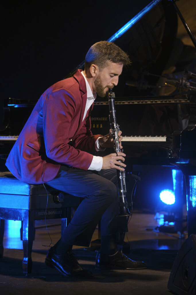 Con meticulosa atención busca construir puentes entre las cuerdas de la guitarra y las del piano, transmitiendo los melismas y la emotividad del cante a través de su clarinete en un espectáculo que engloba las tres vertientes del flamenco: cante, baile y toque.