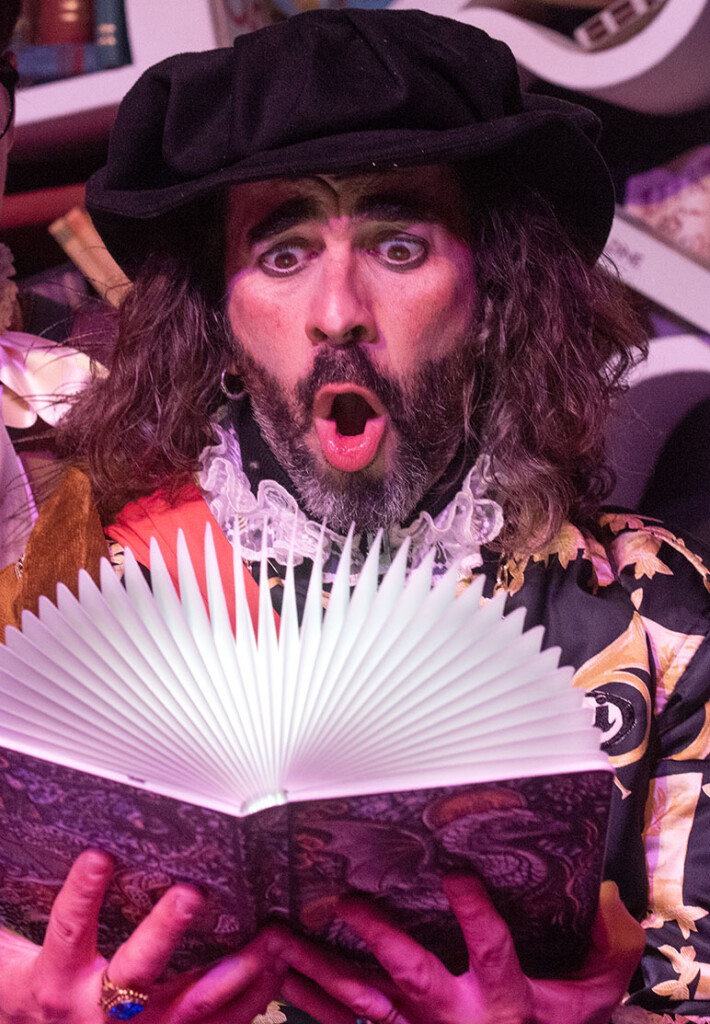 La biblioteca encantada bucea en el universo de la lectura de la mano de nuestro más inquietante bibliómano: el fabuloso humanista Vicencio de Lastanosa. Junto a él exploraremos la poética de grandes maestros como Rosalía de Castro, Machado, Lorca, Alberti o Gloria Fuertes de la mano de alguno de los personajes más divertidos de la literatura universal. Quisiéramos contagiar la pasión lectora a grandes y chicos, ofreciendo nuestro particular homenaje a la literatura a través de una biblioteca mágica que alberga !todas las bibliotecas!